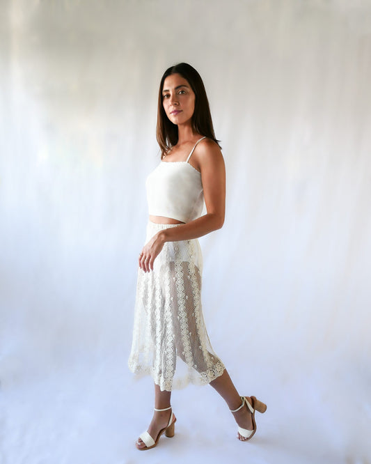 Hand Crocheted Midi Length Chinese Slit Skirt